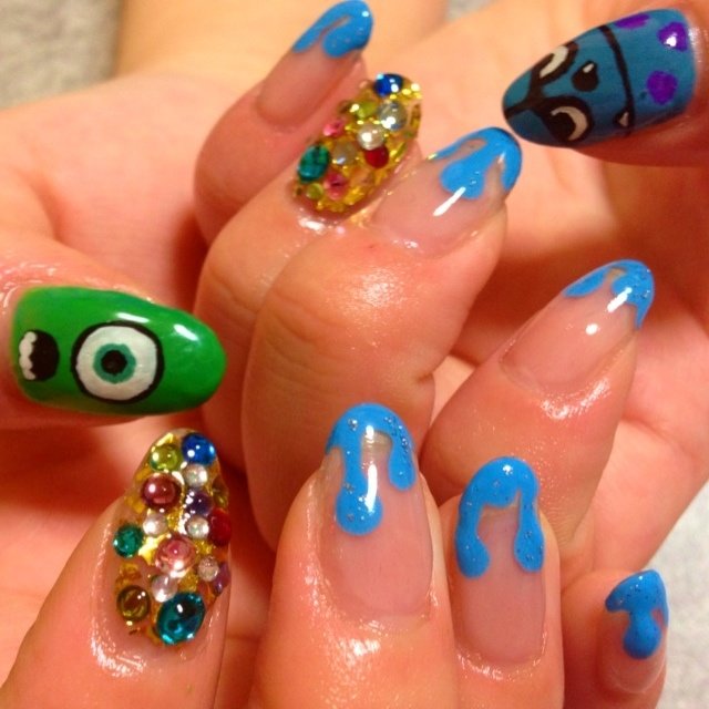 ハンド キャラクター ブルー ジェル セルフネイル Memechim1のネイルデザイン No 2659 ネイルブック